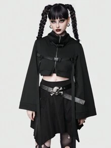 Grunge Punk Sudadera Con Capucha Y Mangas Acampanadas Con Detalle De Hebilla Y Corte Corto Para Mujer