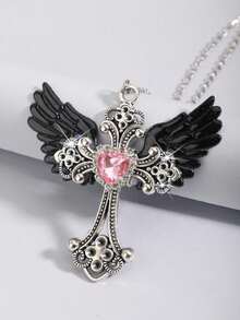 Grunge Punk Collar con colgante de alas cruzadas para mujer