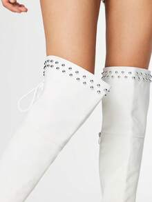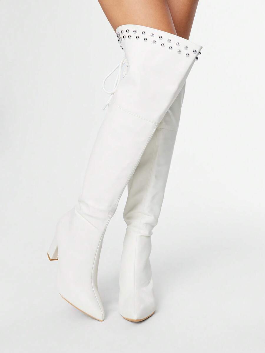 Grunge Punk Botas de tacón alto para mujer, versátiles y elegantes con punta puntiaguda, de moda, con tacón grueso de PU, para otoño/invierno