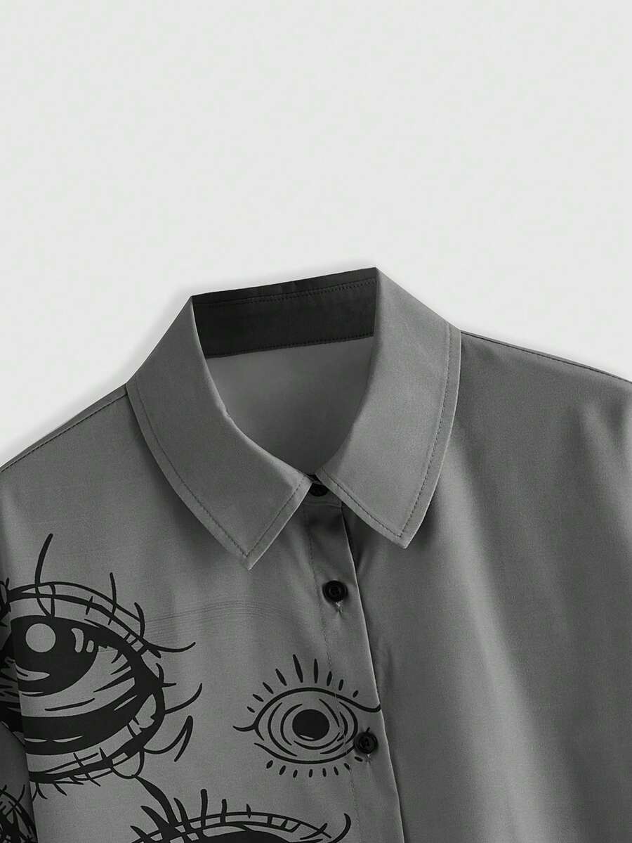 Grunge Punk Camisa De Mujer De Manga Corta Con Estampado De Ojos