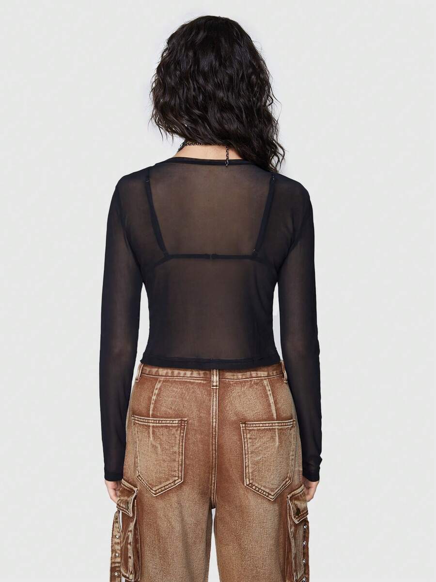 Grunge Punk Camiseta De Malla Traslúcida Decorada Con Estrellas Y Diamantes De Imitación Para Mujeres