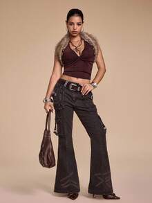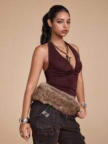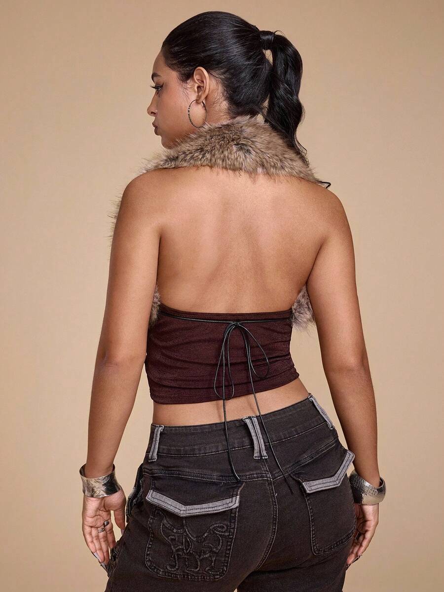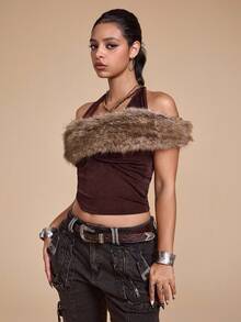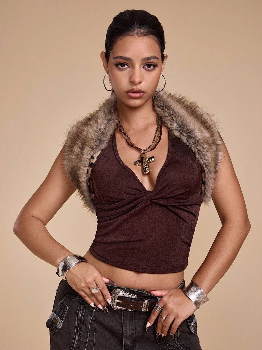 Grunge Punk Cárdigan corto con textura de peluche estilo retro Y2K para mujer
