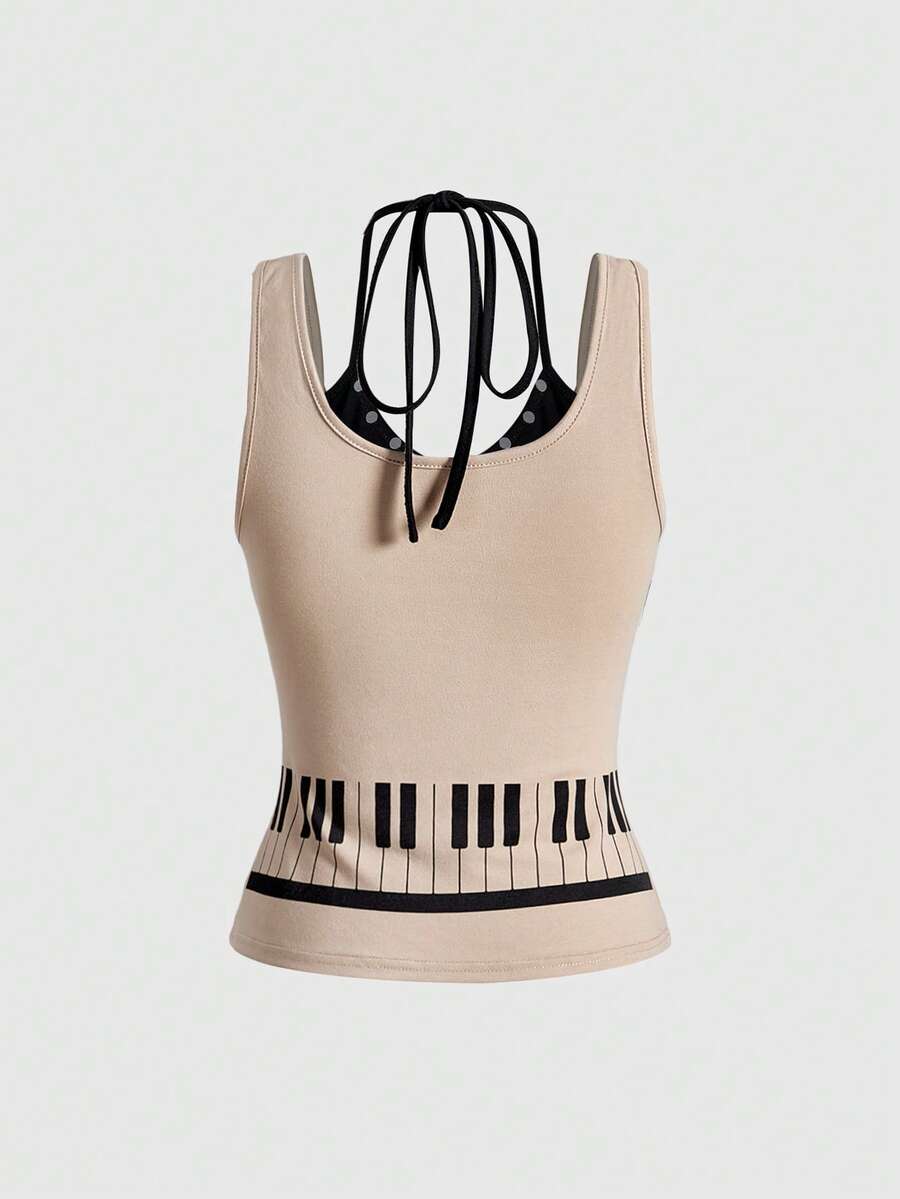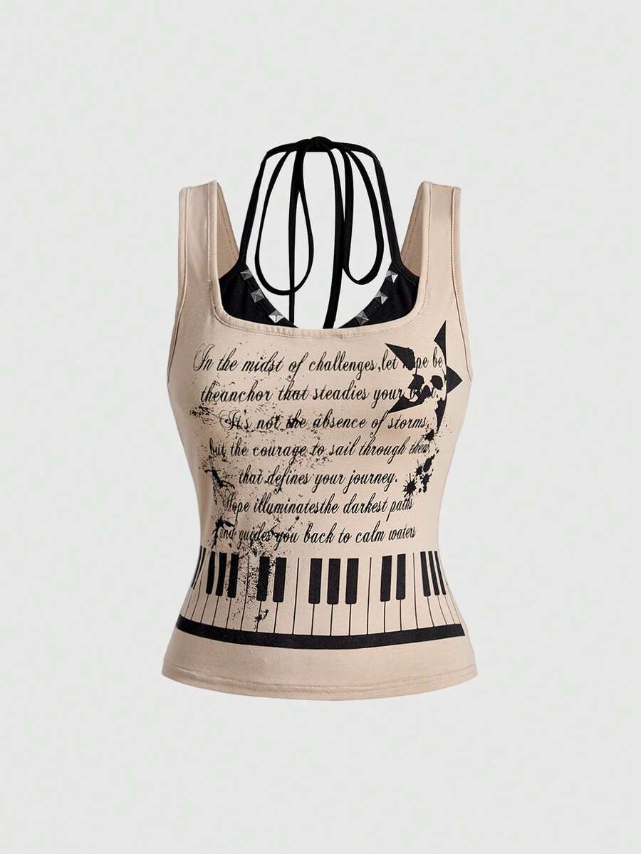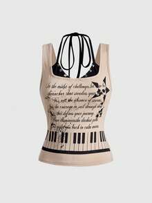 Grunge Punk Camiseta de tirantes con estampado de notas de piano, estilo Y2K Baddie Punk para mujer