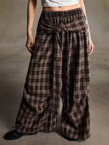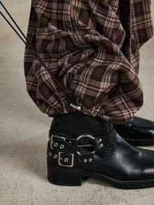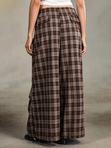 Grunge Punk Pantalones largos de pierna ancha con cuadros desgastados vintage Y2K para mujer