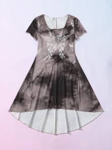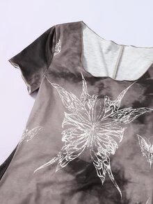 Vestido grunge de tie dye con estampado de mariposa de cuello scoop