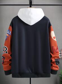 Chaqueta Holgada Con Cuello De Béisbol Y Bloques De Color A La Moda Para Hombre Con Estampado De Letras