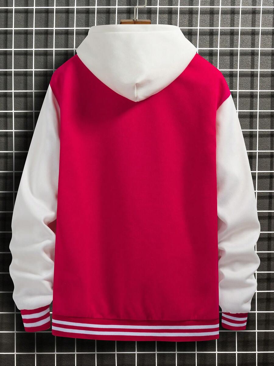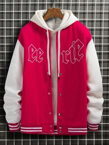 Hombres Cazadora de universidad de color combinado con estampado de letra de hombros caídos sin capucha