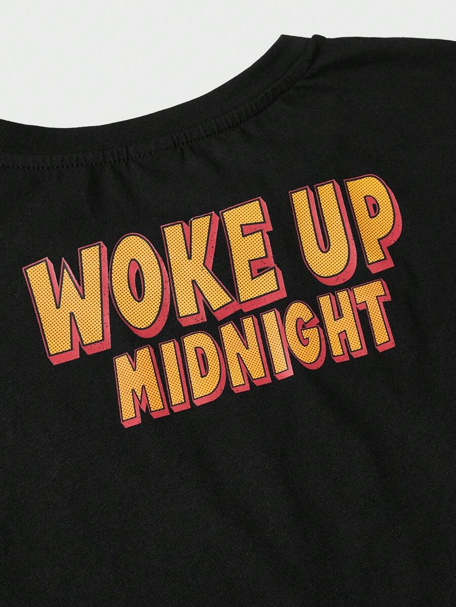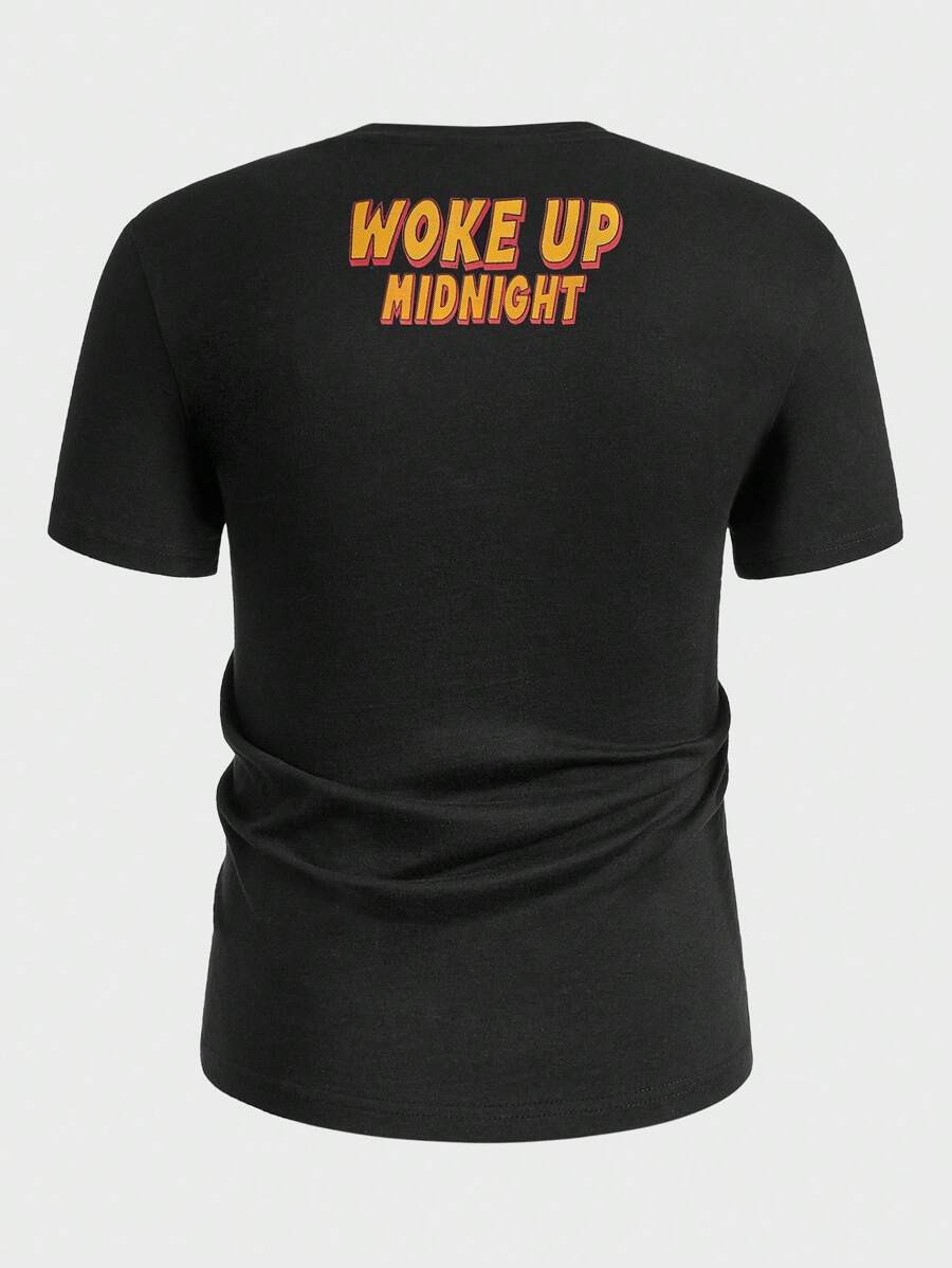Hombres Camiseta algodón con estampado de slogan y figura
