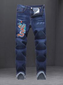 Hombres Jeans con bordado de dragón