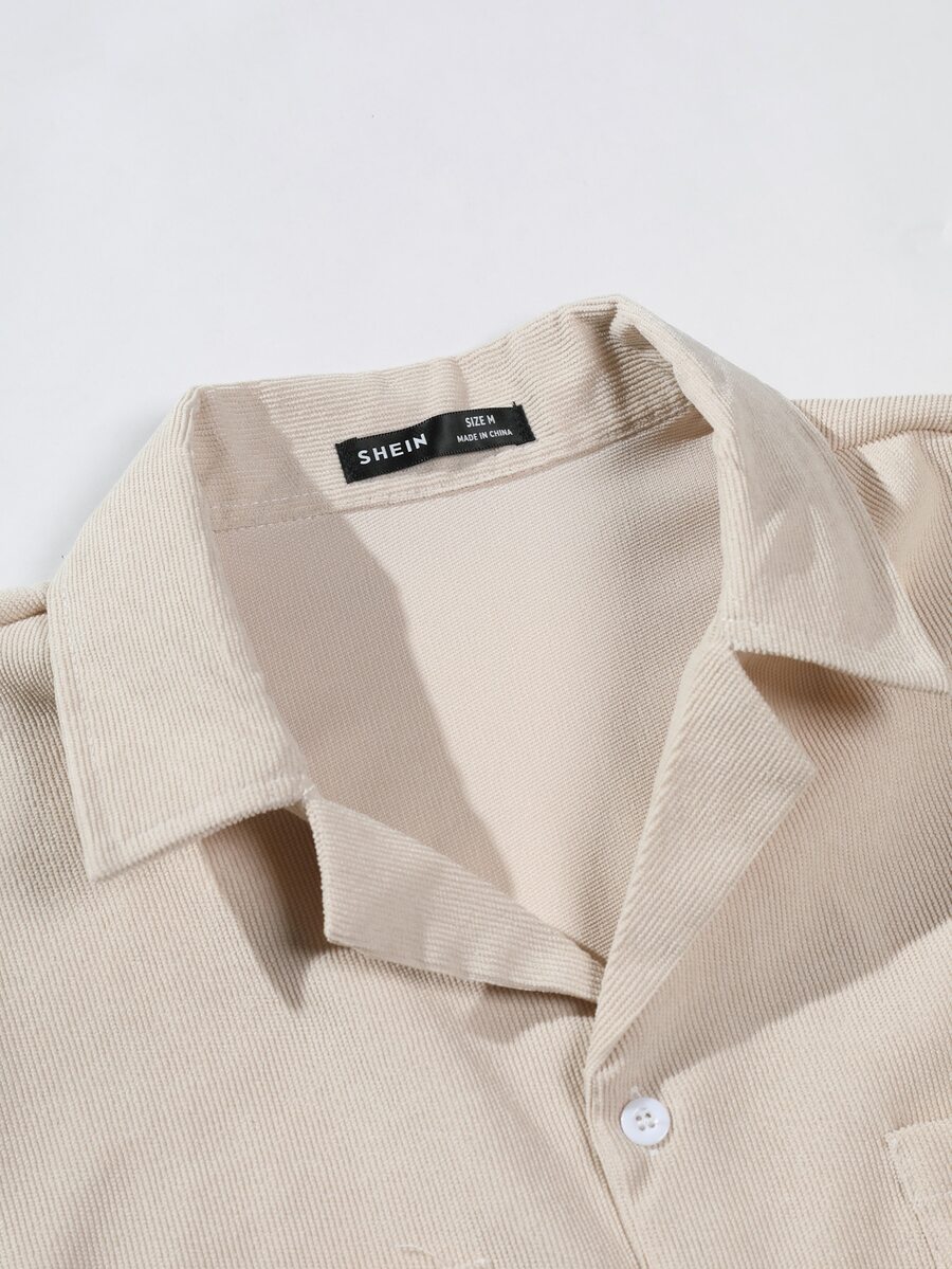Camisa Suelta De Dos Bolsillos Y Pantalones Con Cordón En La Cintura Para Hombres Sin Camiseta
