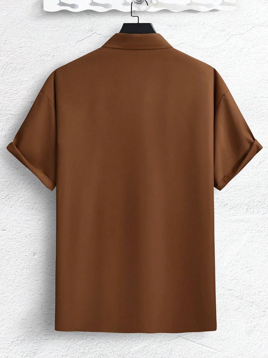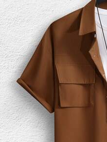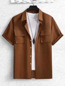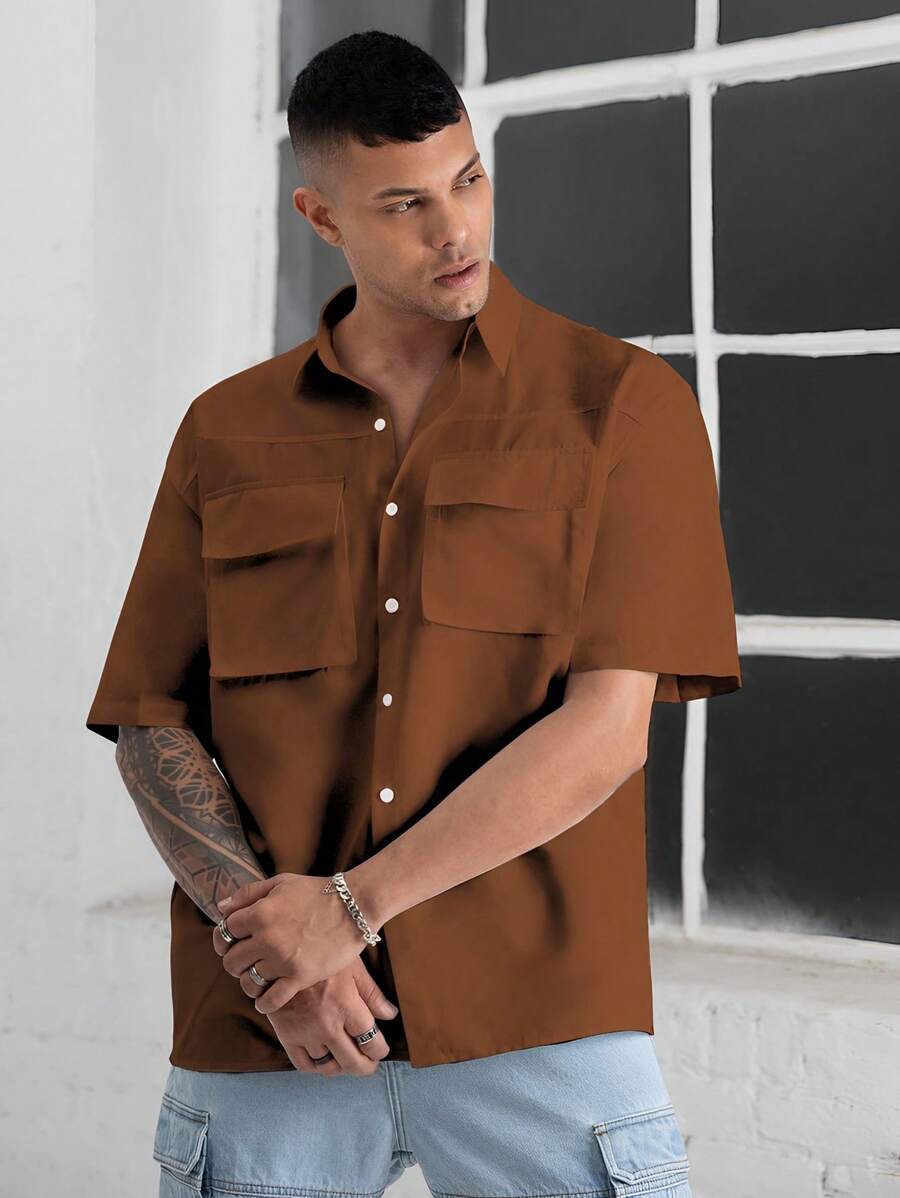 Camisa De Hombre Holgada Con Botones Y Bolsillos Con Solapa