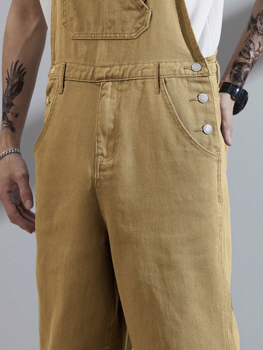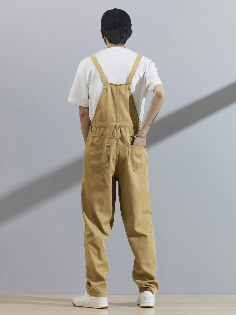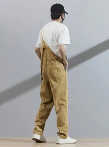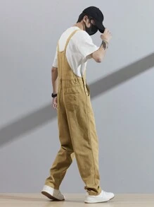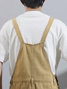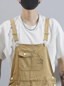 Hombres Petos mezclilla algodón con bolsillo con solapa sin camiseta