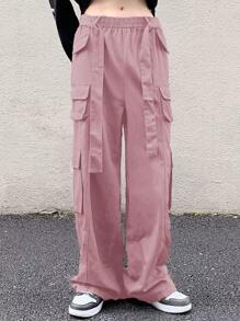 Hombres Pantalones cargo con bolsillo lateral con solapa