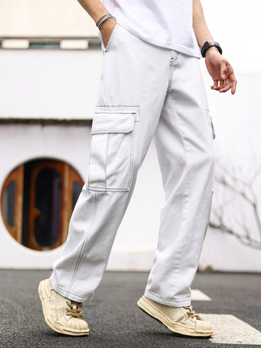 Pantalones Cargo Holgados De Hombre Con Bolsillos Con Solapa Y Bolsillos Laterales