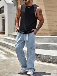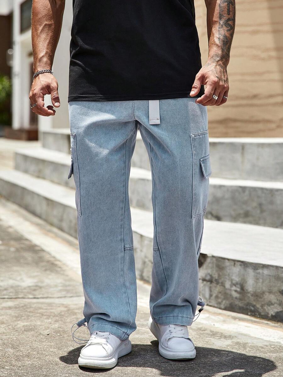Pantalones Cargo Laterales Con Bolsillo De Solapa Para Hombre De Talla Amplia