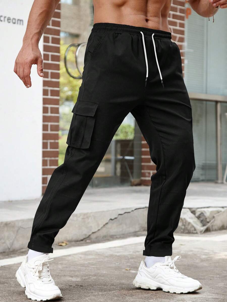 Hombres Pantalones cargo con bolsillo lateral con solapa de cintura con cordón