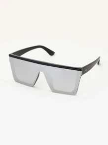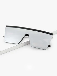 Gafas de moda con montura plana y escudo para hombres