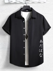 Hombres Camisa con estampado de letra japonesa sin camiseta