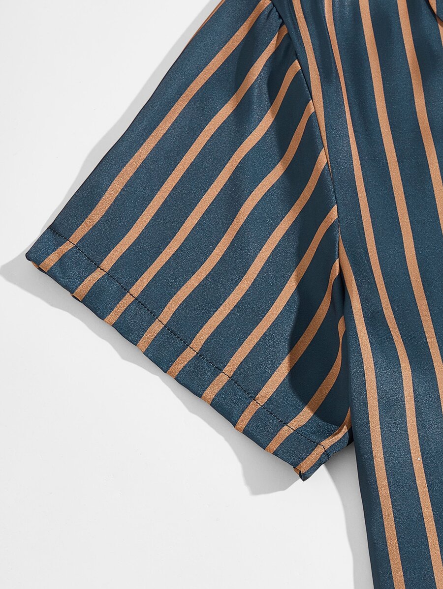 Conjunto de pijama con camisa de cuello de solapa a rayas y pantalones cortos para hombres