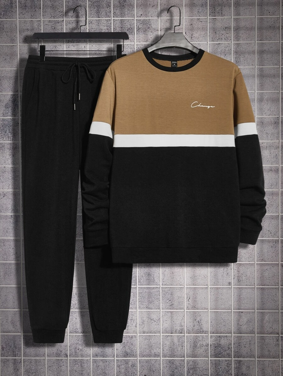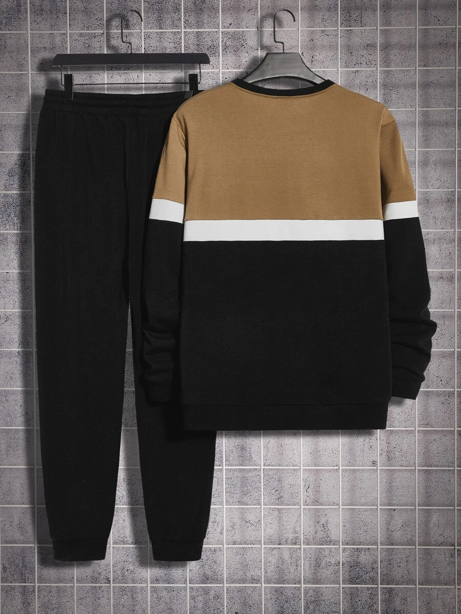 Hombres Pantalones deportivos con sudadera con estampado de letra de color combinado
