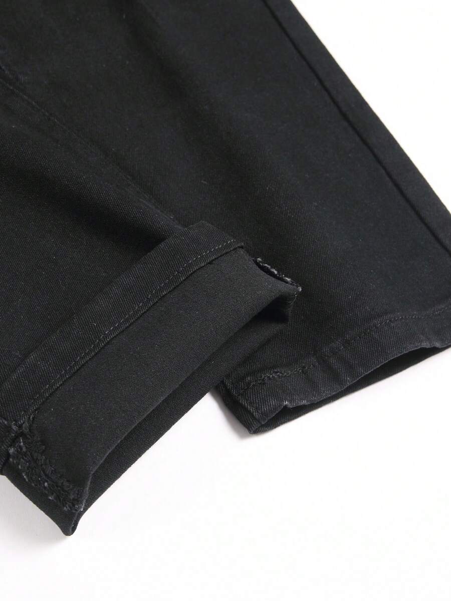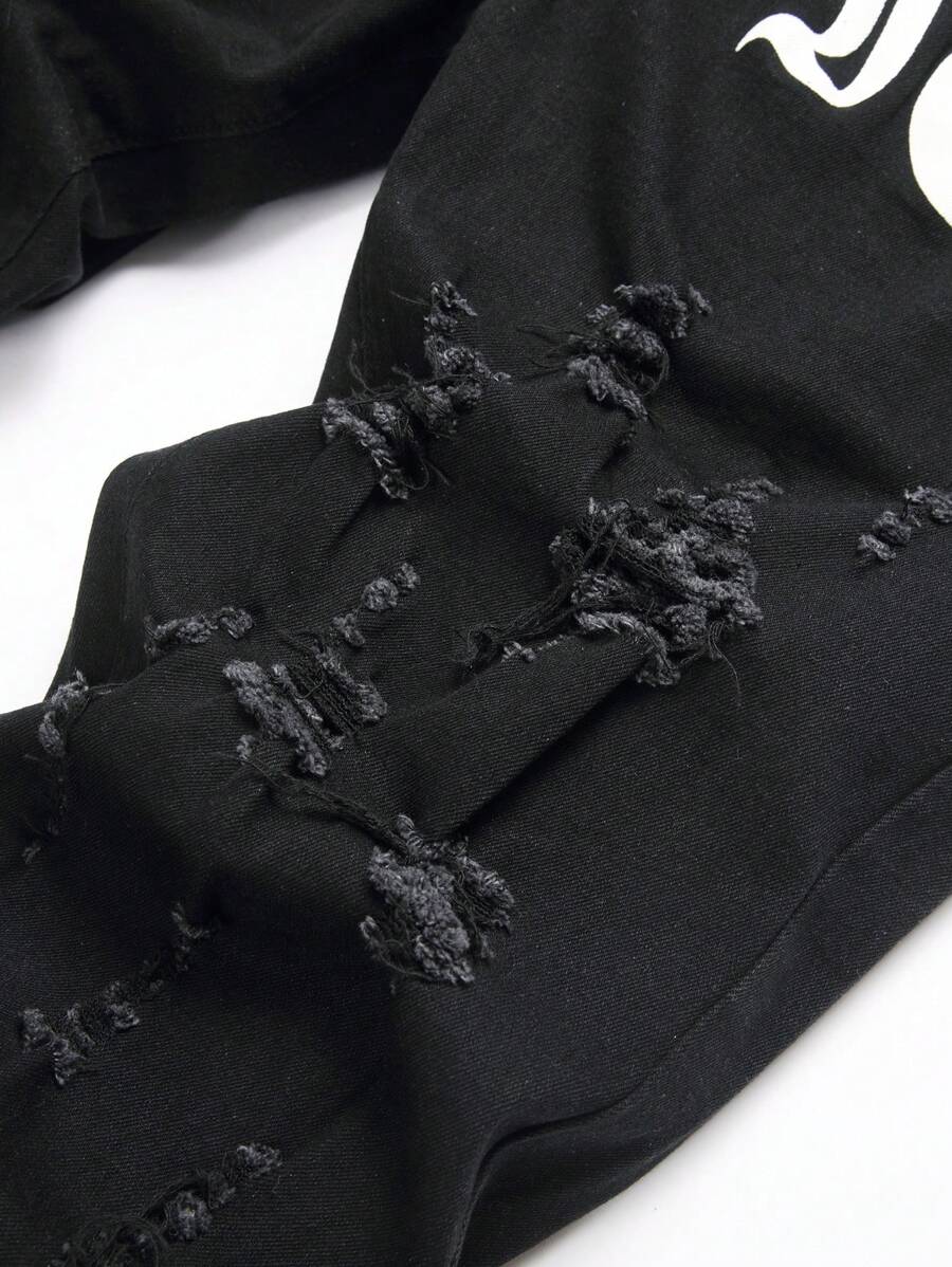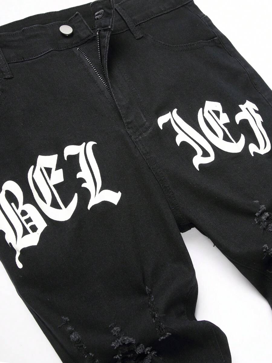 Jeans de algodón para hombre con gráfico de letra, rasgados, con letra lisa, ajuste slim, jeans oscuros, jeans cargo negros lavados largos, para regalo de esposo o novio