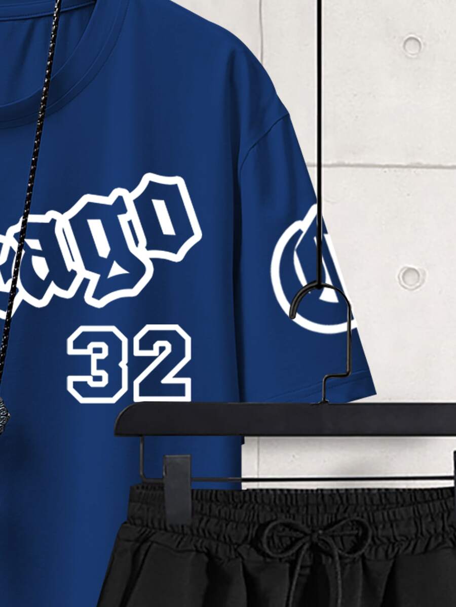 Hombres Camiseta con estampado de letra & Shorts ribete de rayas