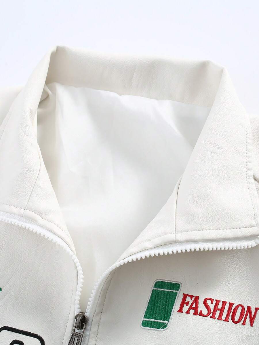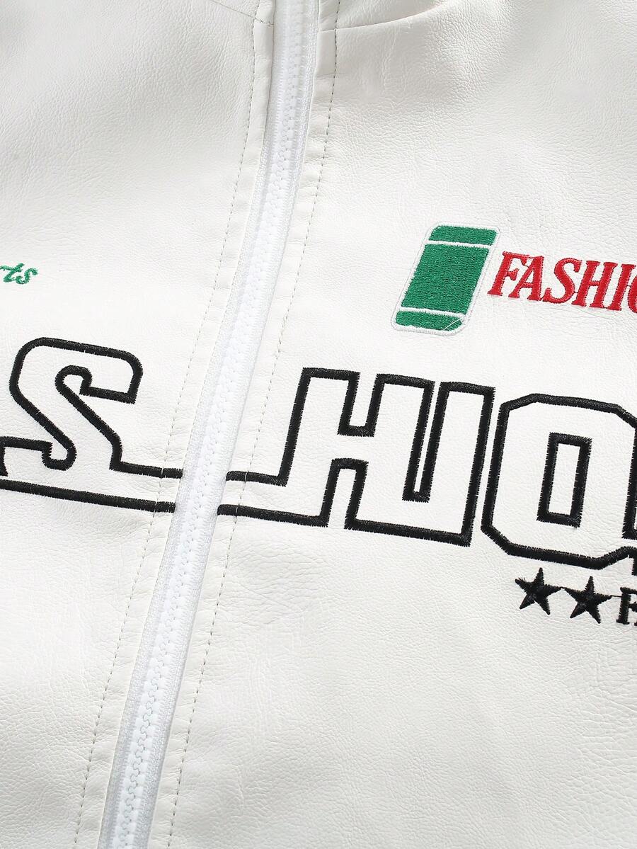 Chaqueta Con Cierre De Cremallera Y Gráficos De Letras Para Hombres Sin Camiseta