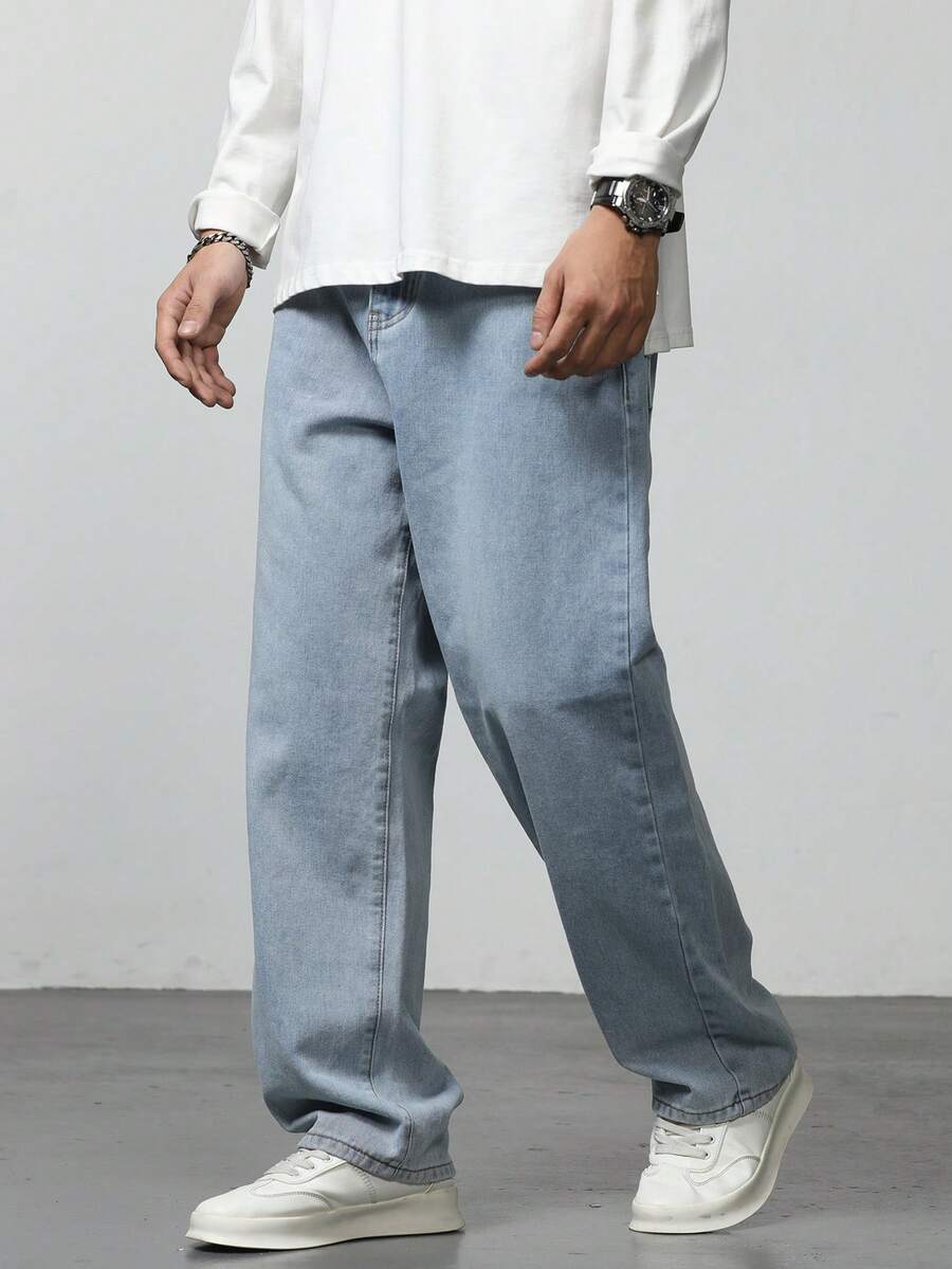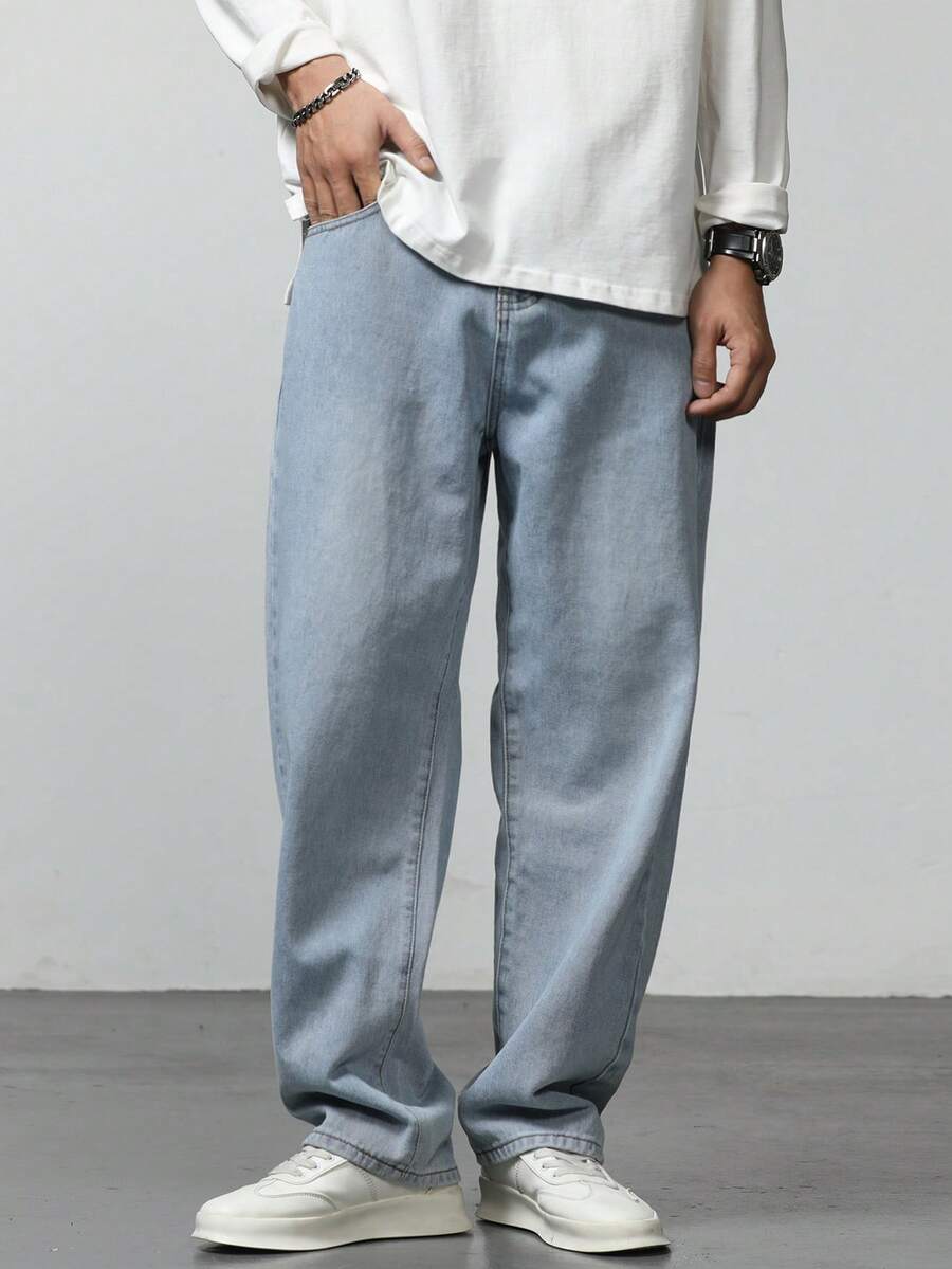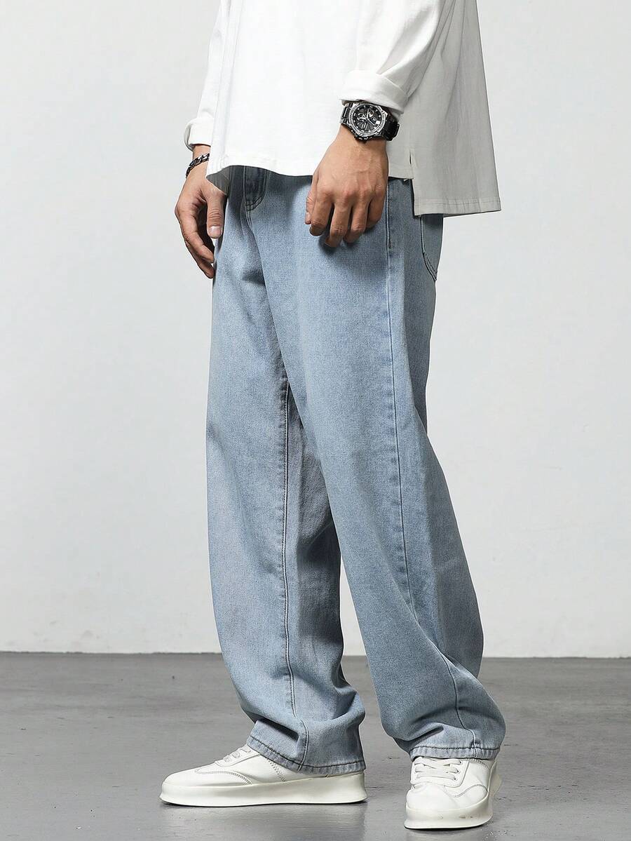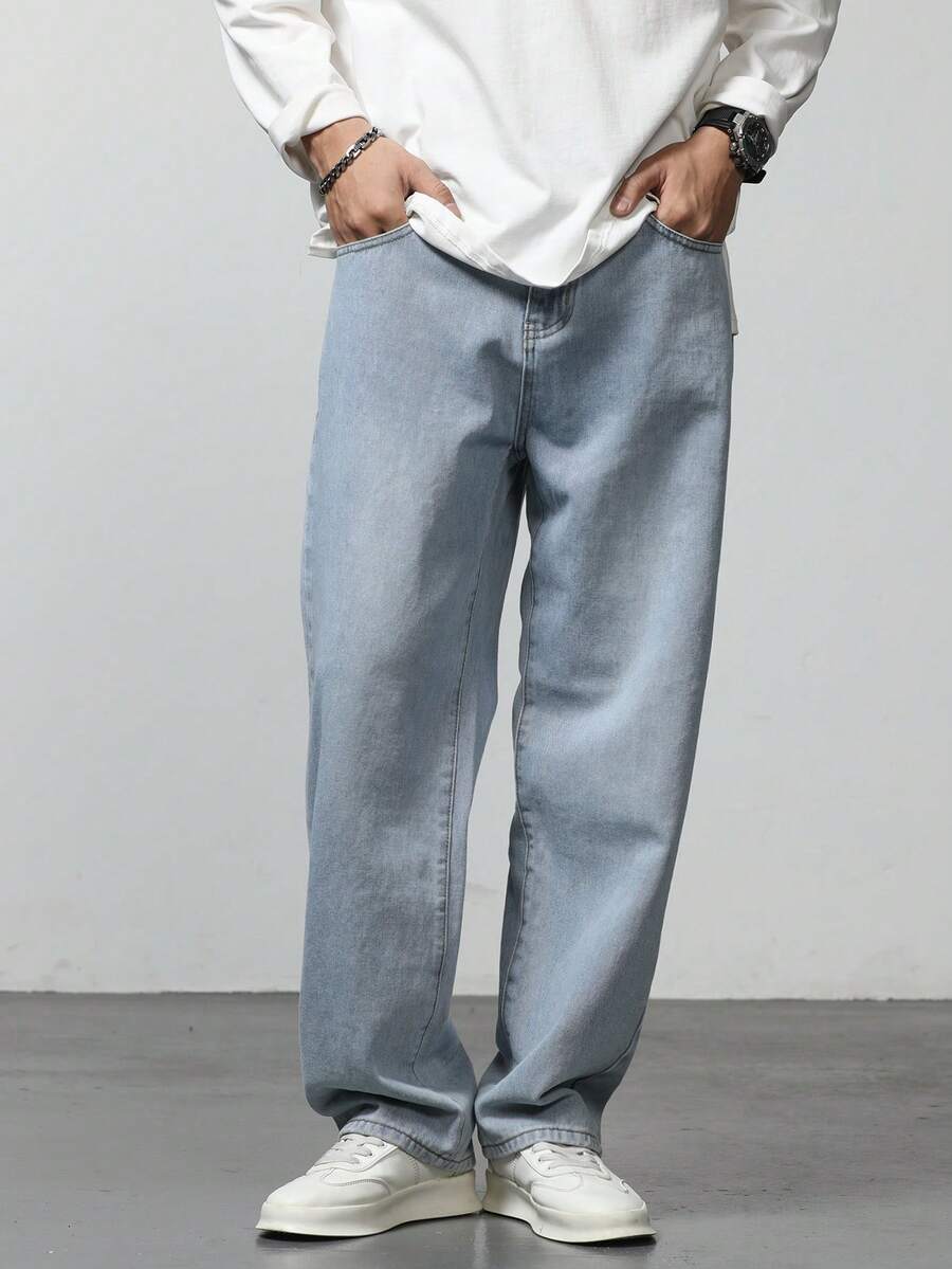 Vaqueros De Bolsillo Diagonal Lavados De Hombre De Ajuste Holgado
