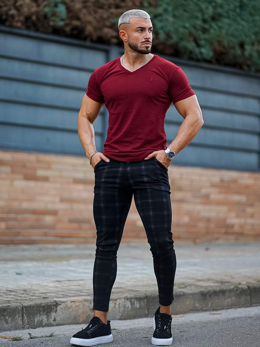 Hombres Pantalones ajustados de cuadros