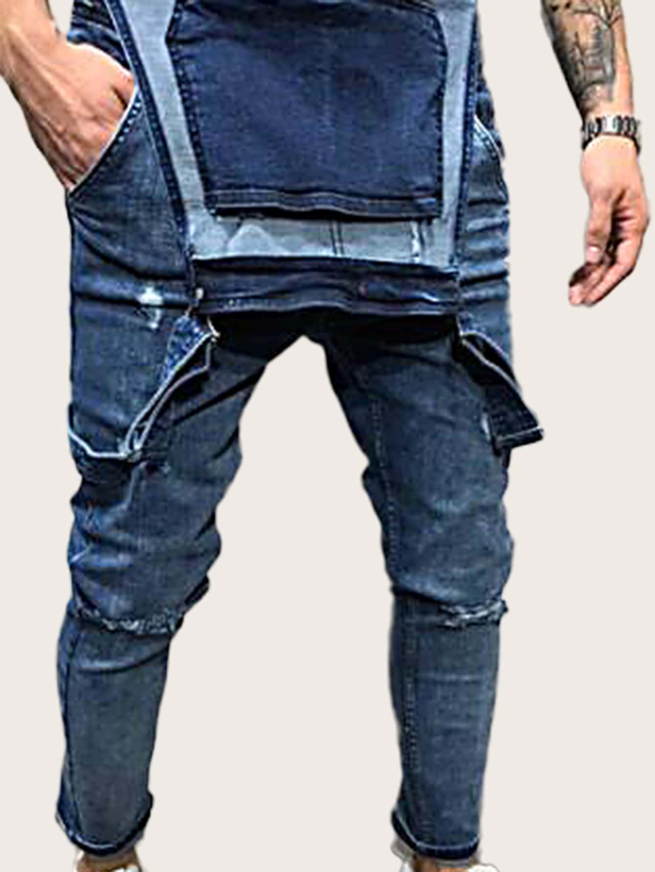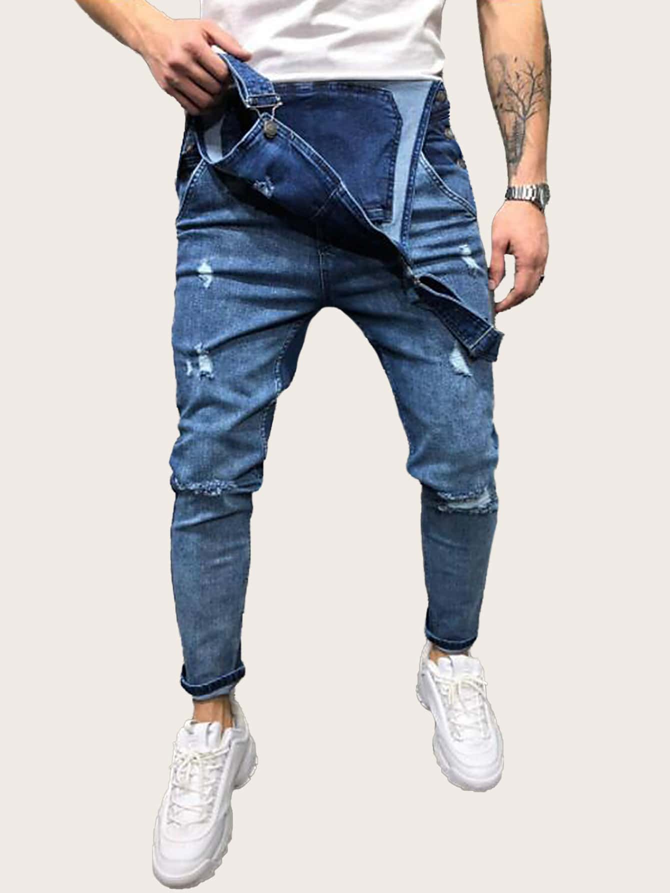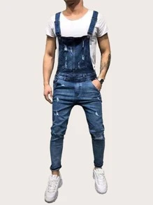 Hombres Overol mezclilla desgarro