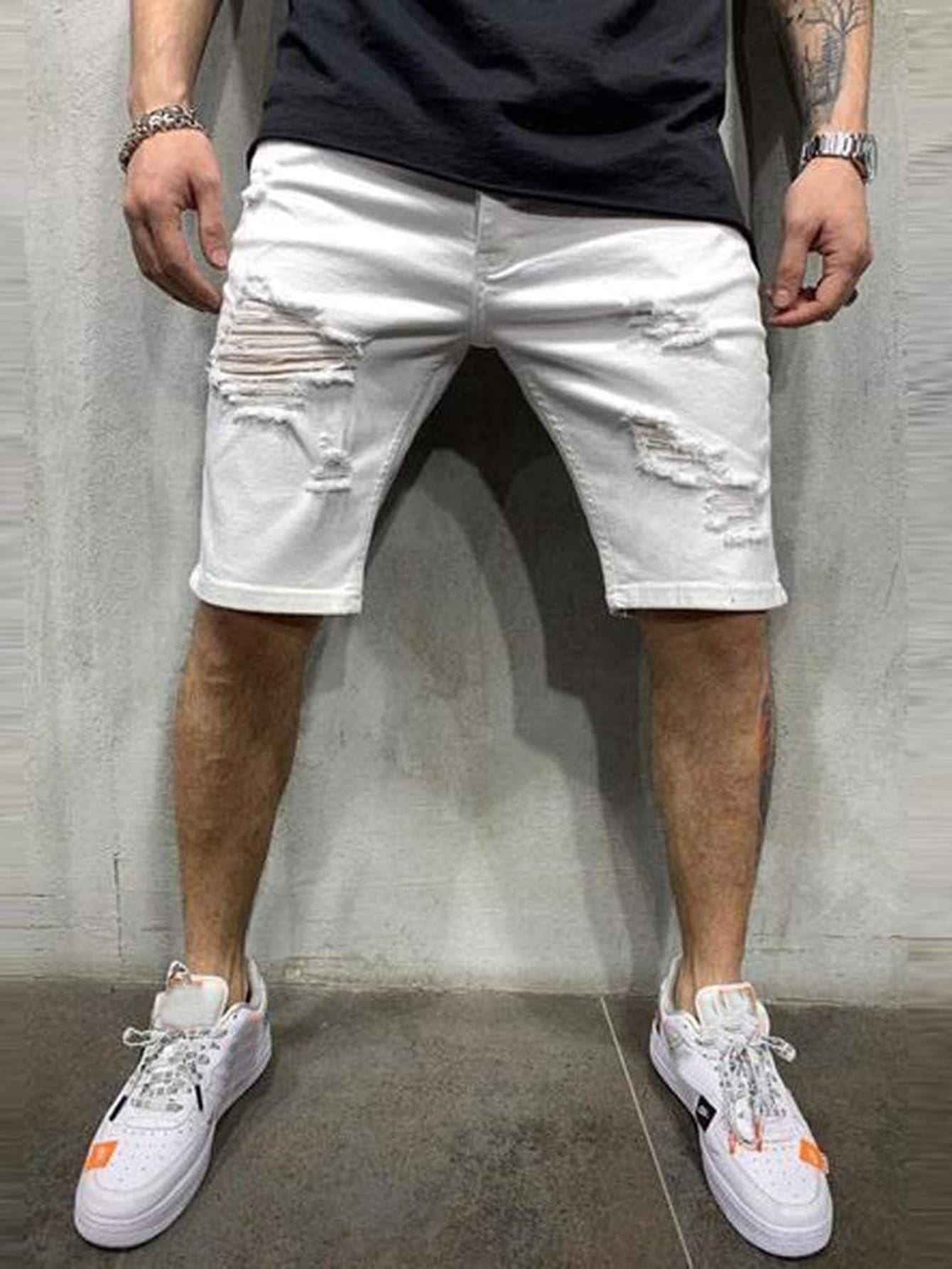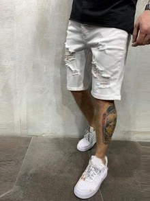Hombres Shorts en mezclilla desgarro