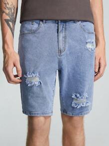 Hombres Shorts mezclilla bermuda desgarro crudo