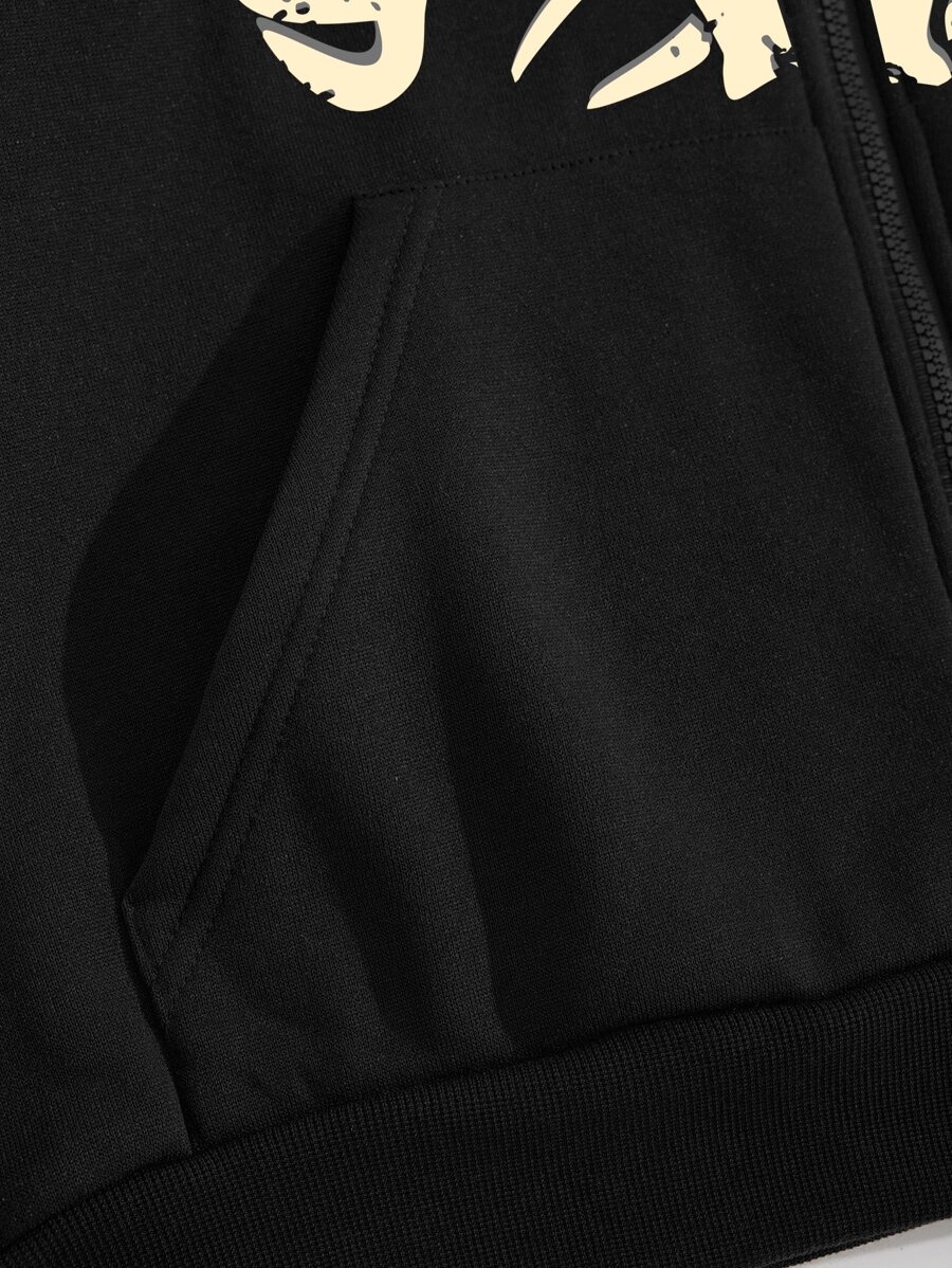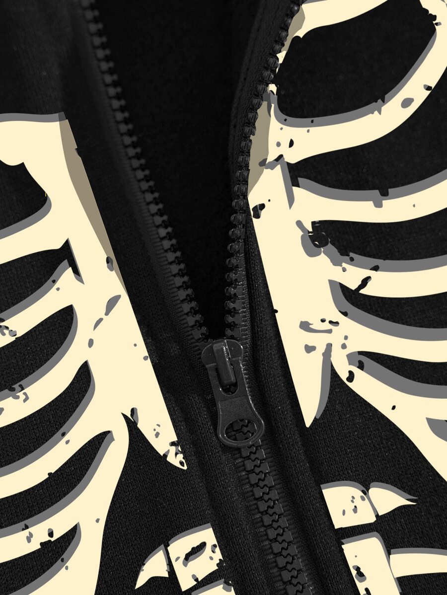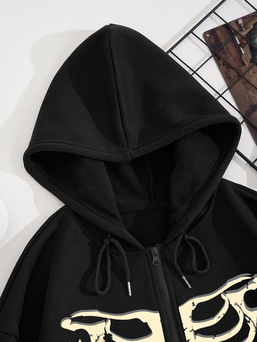 Hombres Capucha estampado de esqueleto con cremallera con forro térmico