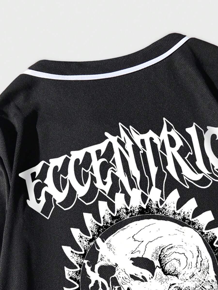 Hombres Camisa de cráneo & con estampado de slogan ribete de rayas