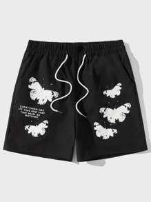 Hombres Shorts con slogan con estampado de mariposa