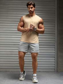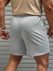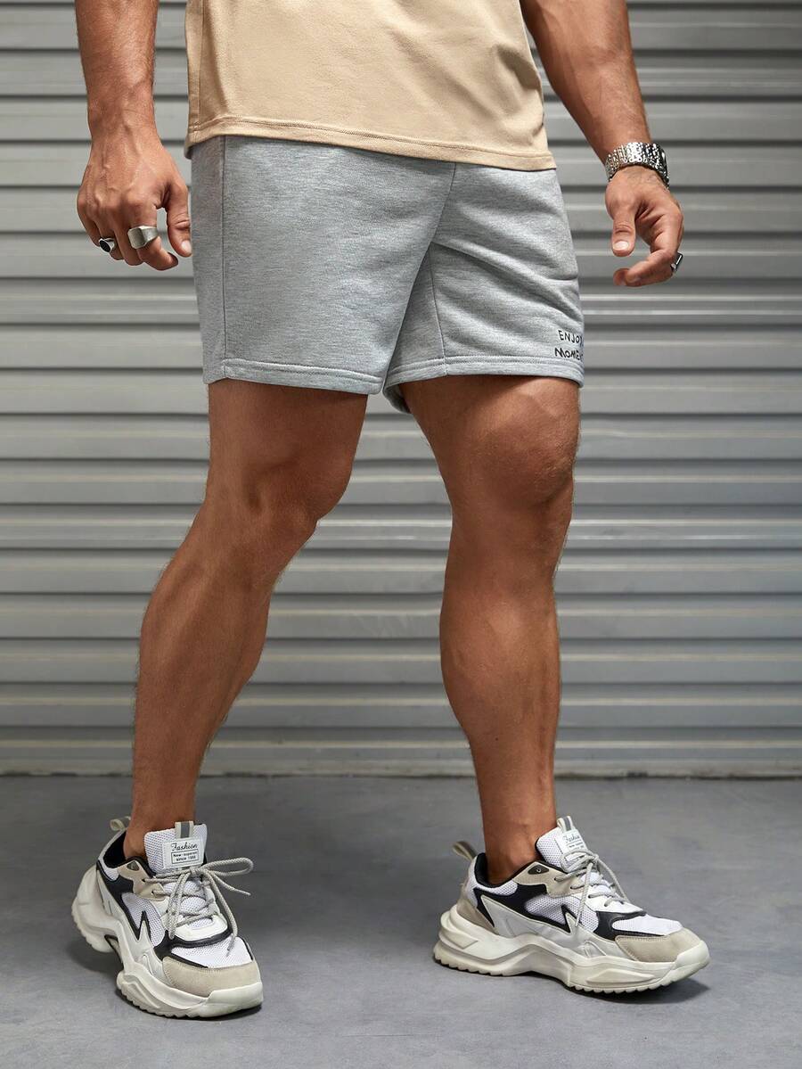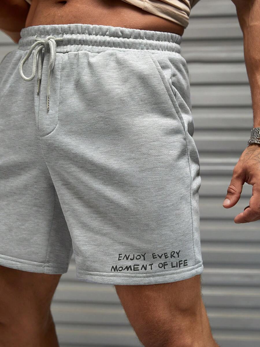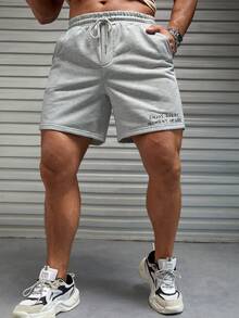Hombres Shorts con estampado de slogan de cintura con cordón