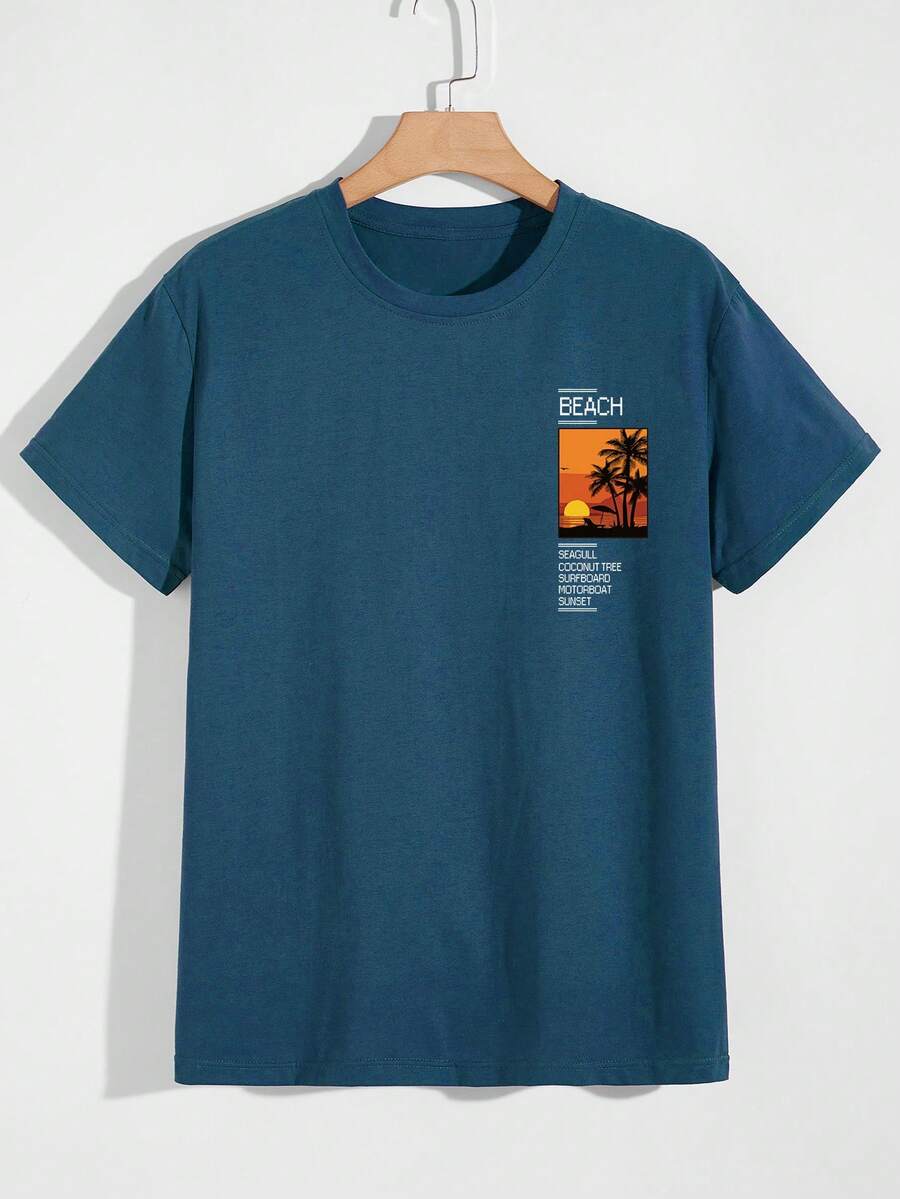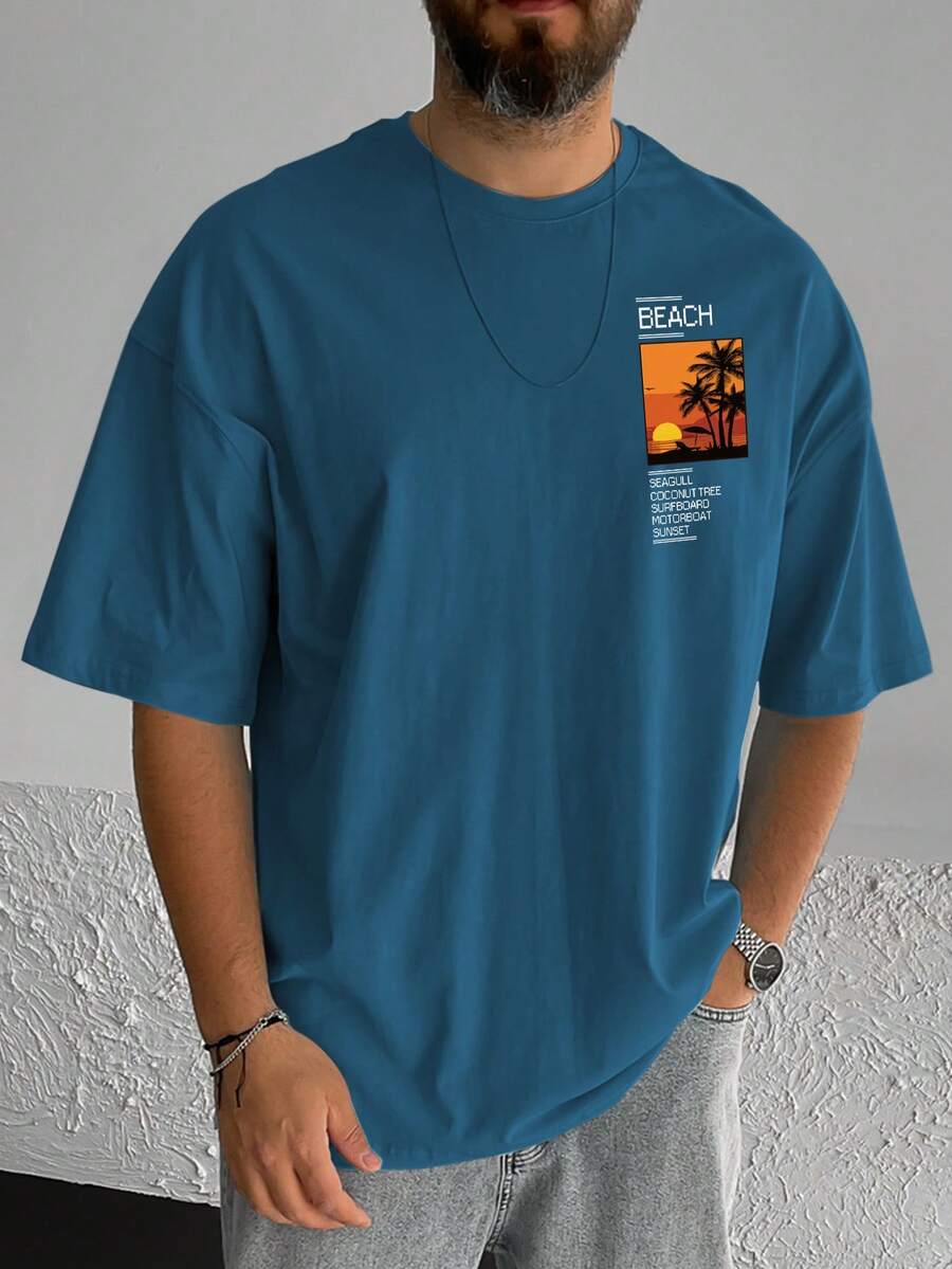 Hombres Camiseta de hombros caídos con estampado de slogan