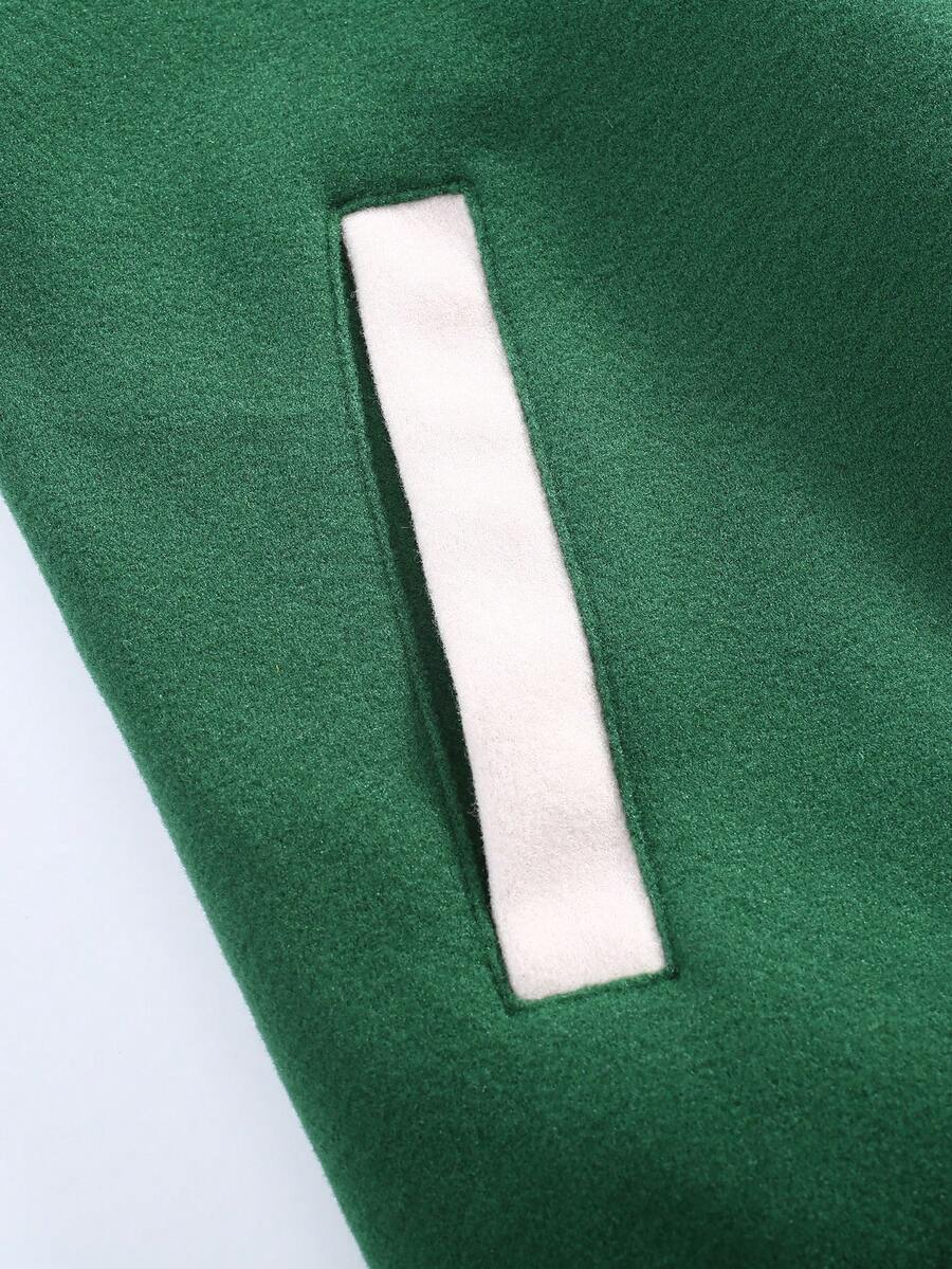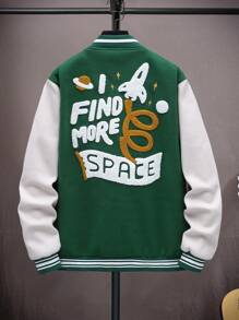 Hombres Cazadora de universidad con estampado de slogan de dos tonos sin camiseta