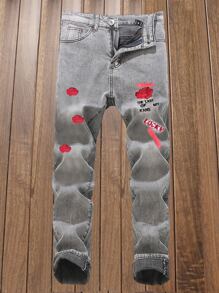 Hombres Jeans con slogan & con estampado de rosa