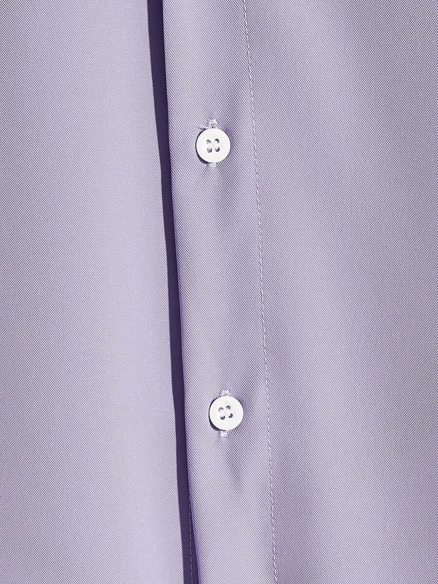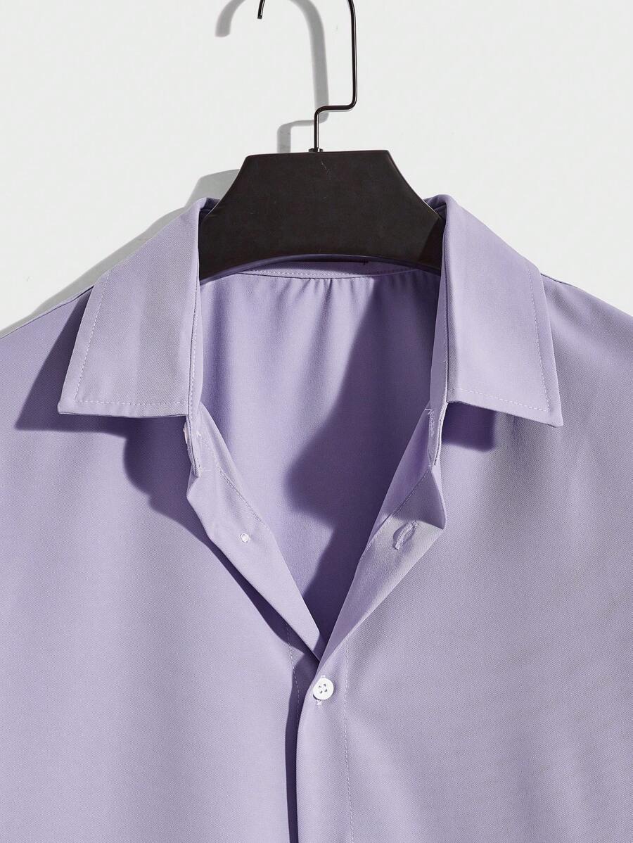 Camisa casual para hombre en color liso morado claro, con botones al frente, corte ajustado, manga corta, cuello y sin estampados.