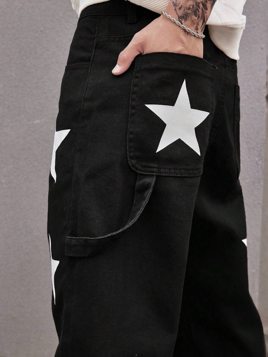 Vaqueros Holgados De Pierna Recta Para Hombre Con Estampado De Estrellas