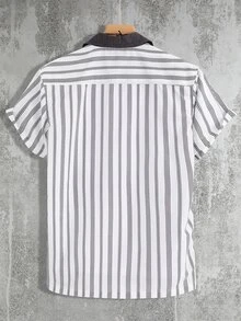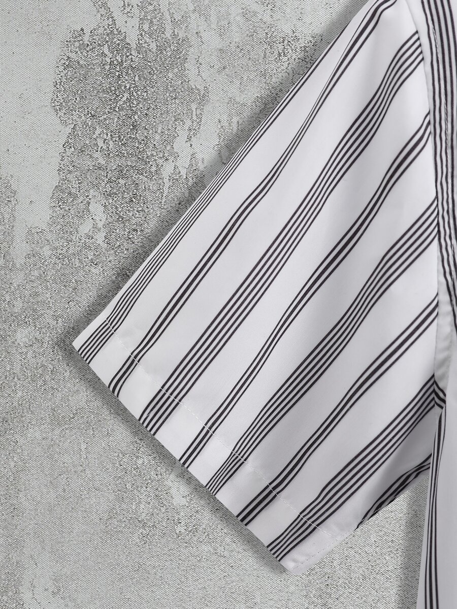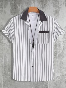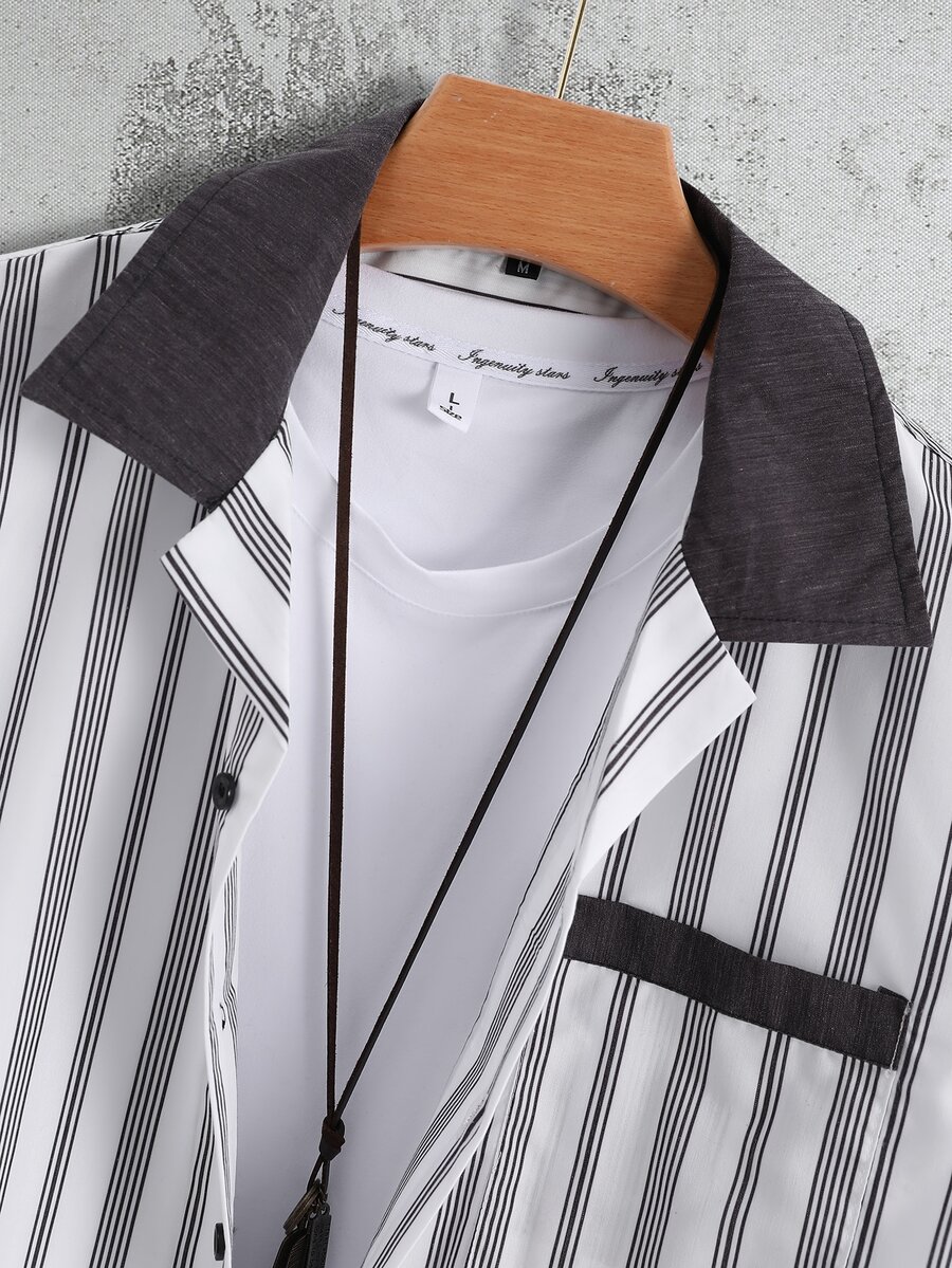 Hombres Camisa con estampado de rayas con parche de bolsillo sin camiseta