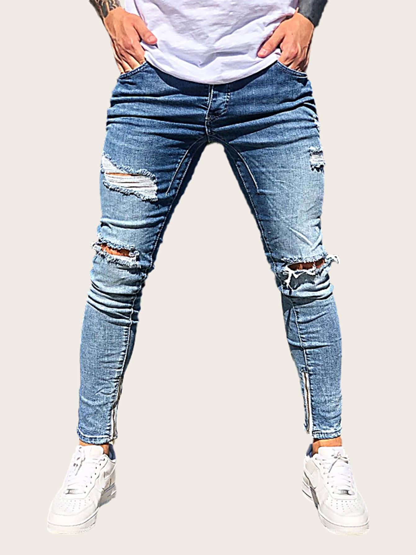 Jeans rotos de chicos con cremallera lateral