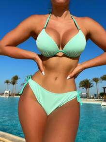 Bañador bikini halter triángulo con cordón lateral