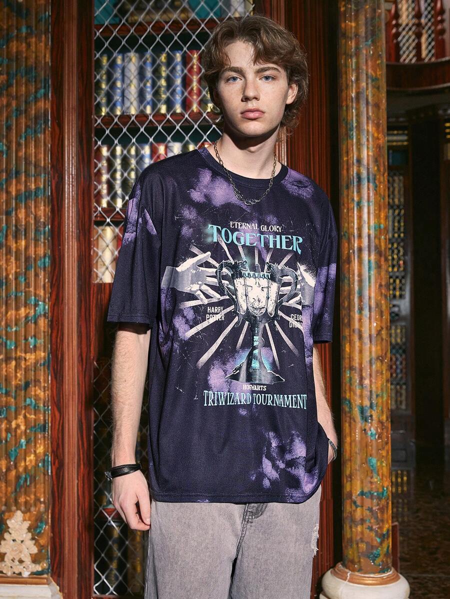 Harry Potter | ROMWE Hombres Camiseta de tie dye con estampado de slogan