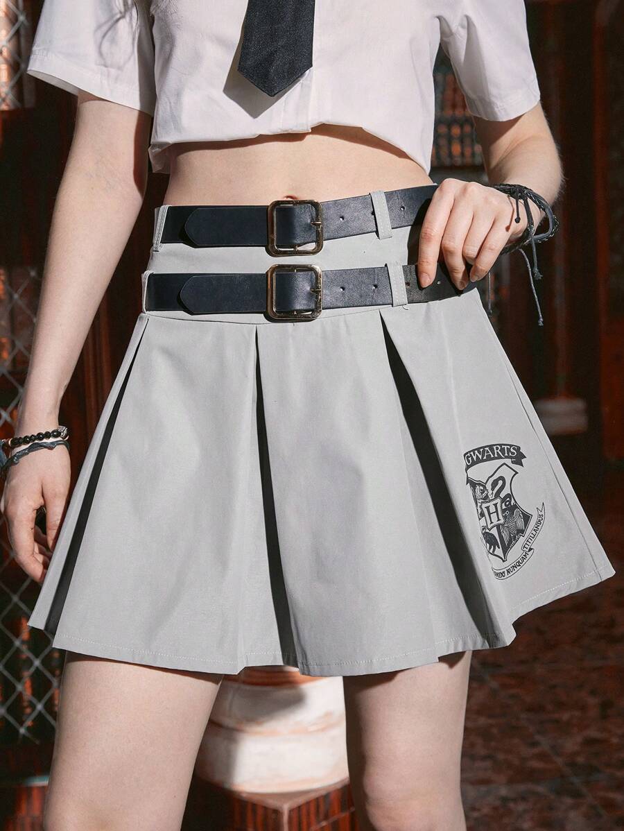 Harry Potter | ROMWE Falda fruncido con estampado de letra con cinturón
