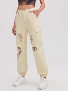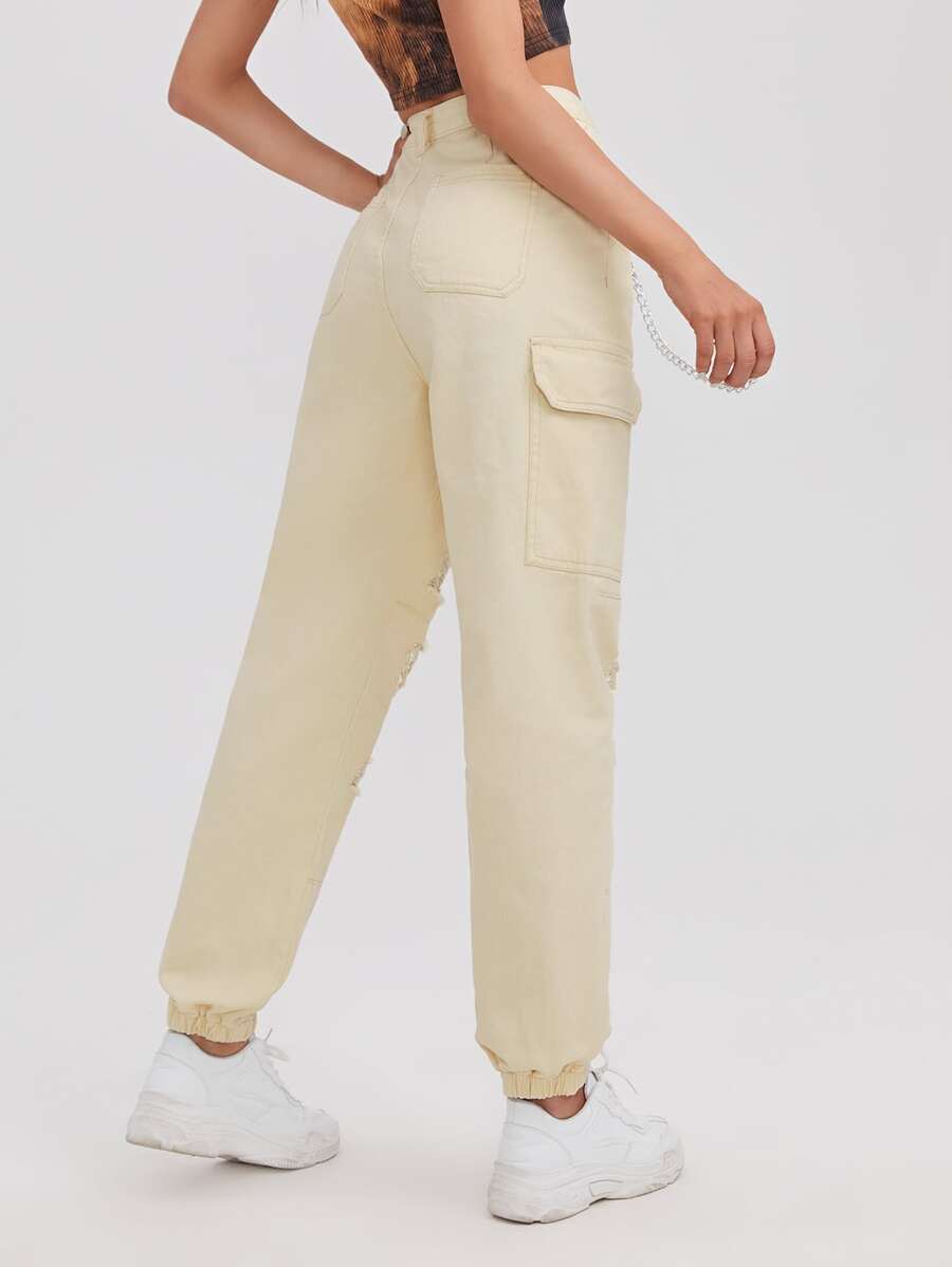 Jeans cargos rotos de lado con bolsillo con solapa con caden a