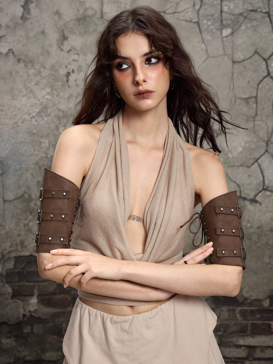 Hippie 1 par de guardias de brazo de PUnk unisex, brazaletes exagerados y anchos de estilo medieval para montar