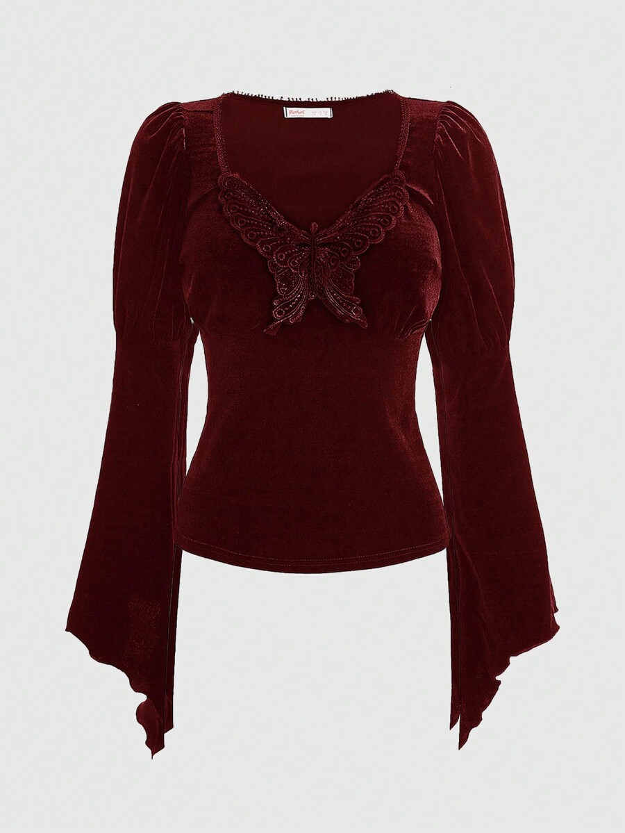 Hippie Camiseta con parche de mariposa de manga amplia