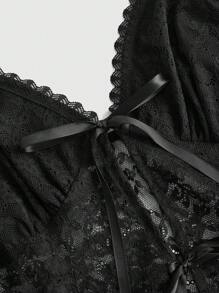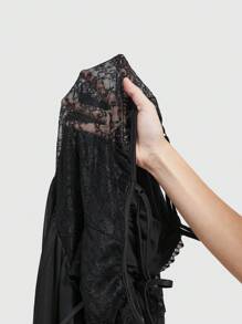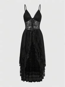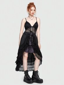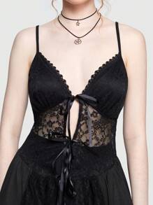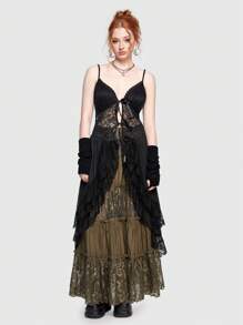 Hippie Top de tirantes con encaje en contraste ribete con fruncido con cordón delantero